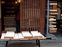 | ◆平成14年12月28日(土) ◆あちこちでお正月の準備・・・・ 冬のすっきりとした青空が広がっていましたが、空気はとってもつめたーい。 まちのあちこちでは、お正月を迎えるための準備。ならまちの和菓子屋さんの店先では大小いろいろな大きさのお餅がずらっと並べられていていました。 来年がいい年でありますように。 |