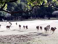 | ◆平成15年1月26日(日) ◆冬の風物詩、鹿寄せ・・・・ 青空が広がり暖かな日中でしたが、夜には雨模様。 飛火野では、毎朝10時から鹿寄せのイベントが行われています。たくさんの鹿さんに囲まれて、大人も子どももびっくり・・・・ ビデオのページには音・動画での鹿寄せ風景をアップしています。 |