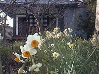 | ◆平成13年1月3日(水) ◆新年、新世紀、あけましておめでとうございます 大晦日から正月3が日の天気は、晴れたり、曇ったり、冷たい雨が降ったり、強い風が吹きつけたり・・・・ この時期、春日大社、東大寺への参拝客で奈良公園は人出がどっと。また、沿道にはいろんな出店がいっぱい。一方、ならまち近辺は、施設、店も閉まっているところが多くひっそりとしています。そんな中、元興寺小塔院跡の庭では可憐な水仙の花が、ほんのりとしたかおりを漂わせながら咲き乱れています。 |