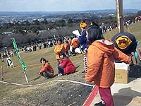 | ◆平成13年3月18日(日) ◆春の陽気の中、若草山で・・・・ 昨日の雨も上がり、今年一番の春の陽気となりました。 若草山の山開きとともに、山腹では特大の鹿せんべいを飛ばす距離を競う「鹿せんべいとばし大会」がおこなわれました。 子供と一緒に参加しましたが、思うように飛んでいってくれませんでした。けれど、奈良の町並みを眼下に見下ろして、気持ちがよかった・・・・ |