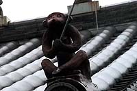 | ◆平成13年4月21日(土) ◆一転ひんやりと、冷たい雨。庚申堂のお猿さんも・・・・ 昨日の夜から急に冷え込んできたかと思うと、今朝から冷たい雨が夜まで降り続いています。 ならまちを歩く観光客の皆さんも、傘をさしたりカッパを着たり。庚申堂の屋根の上に座っているお猿さんも雨にぬれて少し冷たそう・・・・ |