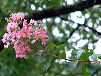| ◆平成14年7月14日(日) ◆百日紅の花も咲き始めて・・・・ うだるような暑さの中、蝉さんたちは一生懸命ないています。 百日紅(さるすべり)の木の枝には、小さいけれどピンク色の鮮やかな花が目につくようになってきました。 (この季節の散策は、朝早くか夕方あるいは夜がいいですね) |