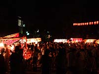 | ◆平成14年8月3日(土) ◆たくさんの夜店と盆踊りの歌声・・・・ 日中の猛暑はまだまだ続いています。 毎年この時期恒例の猿沢池の盆踊り。池の周りにずらっと並んだいろいろな夜店。日が落ちるとともにどっと人出も増えてきます。 子どもは、くじ引きとかき氷で満足満足。 |