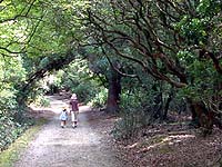 | ◆平成14年9月16日(祝) ◆樹木のトンネルを抜けると・・・・ 朝晩ずいぶん涼しくなって、虫の音がそこかしこから聞こえてきます。散策に訪れる方もずいぶん増えてきました。 春日大社参道の南側に裏道的な散策路があります。どことなくトトロの映画を思わせる風景です。 |