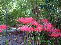 | ◆平成14年9月23日(祝) ◆秋分の日、赤い花・・・・ お日様が顔を出しているのに、風がとても強い秋分の日の一日でした。 ならまちにある元興寺小塔院後の境内では、まっ赤な彼岸花がひっそりとたたずんでいました。また、ならまち格子の家では、足を休める散策者でいっぱいでした。 |