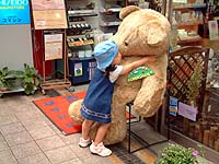 | ◆平成14年9月28日(土) ◆いとしのテディベアーはどこへ?? ずいぶんすごしやすくなってきました。 もちいどの商店街にあります化粧品屋さんの店先に飾られていたテディベアーの大きなぬいぐるみがしばらく前に、2人連れの男の子にどこかに連れ去られちゃったそうです。我が子もとても気に入っていたのに残念です。早く戻ってこないかな・・・・ (写真は7月初めの時のものです) |