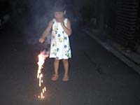 近畿地方もやっと梅雨明けいたしました。例年、梅雨明け宣言が出されると、雨が降ることが多いのですが、今日はカンカンでりのうだるような夏の一日でした。 8/1といえば、大阪の富田林では世界一(だったかな?)のPL花火でしたね。あの殺人的な人出の中には、小さな子供はまだ連れていけません。家の前で、静かに小さな花火大会です。