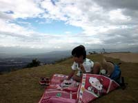 おいしい空気とともに、おいしいお弁当をもりもり食べる。ただ、こんな山の上にも鹿さんが住み着いているんですね。 |