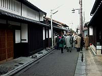ならまち「格子の家」の前の通りです。観光される方とよくすれちがいます。「格子の家」の前には、最近、「藤岡家」(国の重要文化財)が個人の手によって新調され、しばらく一般公開されています。(写真右) |