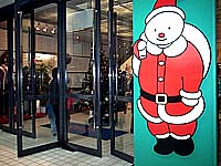 このあたりで初めて、サンタさんとクリスマスツリーの姿を見かけました。音楽まではまだですが・・・・ |