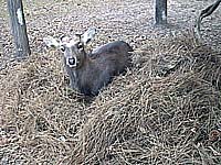 鷺池の北側の土手の上では、鹿さんが一匹、枯れ草をうずたかく積んだ中にちょこんと座っていました。当然、鹿さんもかなり寒いんでしょう。 |