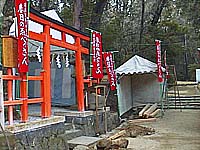 本殿から南側にあるひとつのお社では、商売繁盛の神様がまつられているとかで、1月10日には春日のえべっさんが行われるそうです。今日はその準備中。(大阪の今宮戎とはとうていくらべもんになりませんが・・・・) |