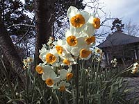 境内に季節ごとにいろいろな花を咲かせる元興寺小塔院跡です。(場所はお気に入りのページを参照下さい) 今は、まだこんなに寒い冬空のもと、ほんのりきいろいろのかれんな花が咲き乱れています。 |
