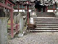 雨がひと休みになった昼下がり、風が強いのを我慢して、子供と最後の花見にと東大寺南側にあります氷室神社に出かけました。(しだれざくらで有名だそうですが、その木は花が全部散ってしまっていました) 境内は、散った桜の花でうす紅色に染まっていました。 時折吹く強い風で、さーっと花が舞い散って、鹿さんも子供も少しびっくり・・・・ これからひと雨ごとに暖かくなってくるのでしょう。 |